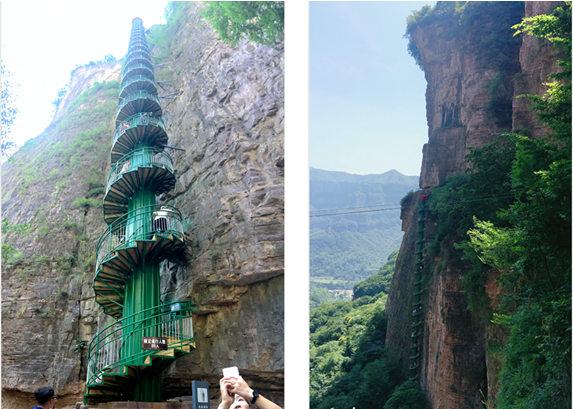 王相巖的特色是懸崖棧道和88米高的摩天筒梯!世上無難事,只要肯登攀!大家躍躍欲試,都要挑戰(zhàn)一下。以馬總、晁總為首的第一小分隊(duì),一路領(lǐng)先,不畏艱險(xiǎn),披荊斬棘,率先到達(dá)終點(diǎn)!有了帶頭人,大家一股作氣、克服困難,戰(zhàn)勝自我;途中小伙伴們互相打氣,互相鼓勵(lì);一路互相攙扶,一起登高望遠(yuǎn),在山頂享受‘一覽眾山小’的美景,體驗(yàn)“無限風(fēng)光在險(xiǎn)峰”的豪情!。
